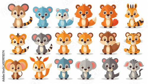 © picpics, Obraz premium Set isolé illustrations cartoon icônes animaux enfant fun mignon ludique.