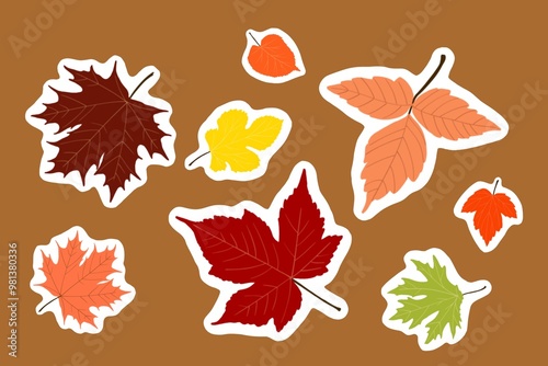 Obraz premium Set isolated bright stickers beautiful autumn leaves