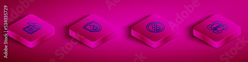 Fototapeta premium Set Isometric line Electric wiring of socket in fire, Fire protection shield, No and Emergency call 911 icon. Vector