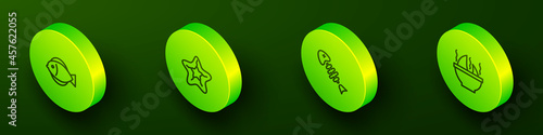 © Kostiantyn, Fototapeta premium Set Isometric line Fish, Starfish, skeleton and Shark fin soup icon. Vector