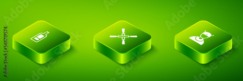 Fototapeta premium Set Isometric Oars or paddles boat, Viking head and Bottle of vodka icon. Vector