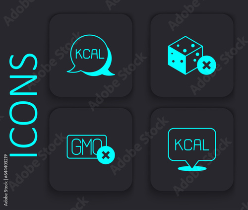 Fototapeta premium Set Kcal, No sugar free and GMO icon. Black square button. Vector