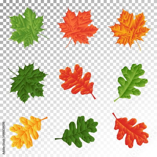 Fototapeta premium set - leaves of maple and oak for natural decoration. Isolated. Vector...