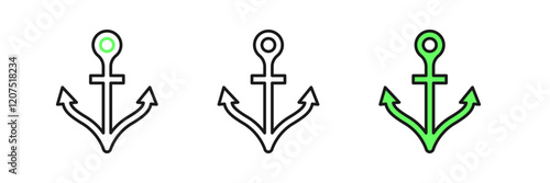Obraz premium Set line Anchor icon isolated on white background. Vector