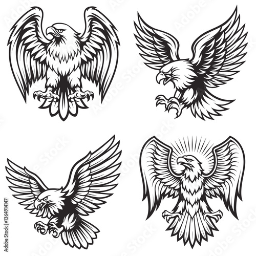 Fototapeta premium 4 set line art Eagle vector