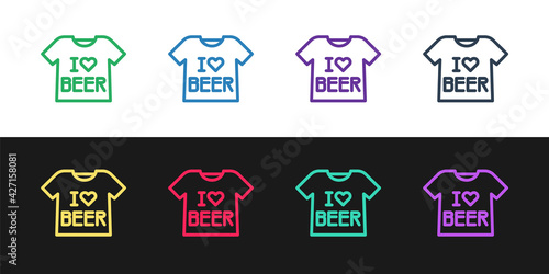 Fototapeta premium Set line Beer T-shirt icon isolated on black and white background. Vector