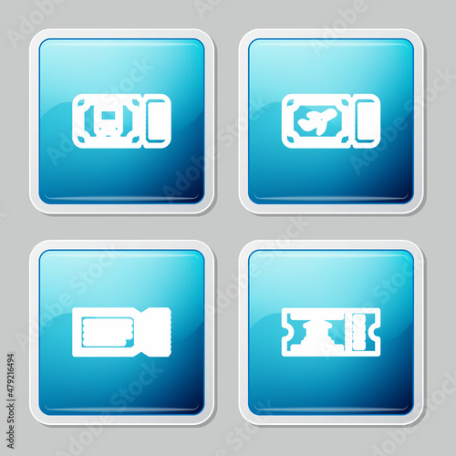 Fototapeta premium Set line Bus ticket, Airline, Ticket and Museum icon. Vector