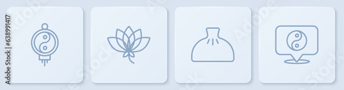 Obraz premium Set line Chinese paper lantern, Dumpling, Lotus flower and Yin Yang symbol. White square button. Vector