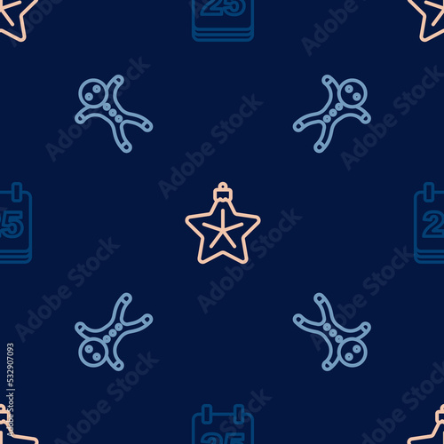Fototapeta premium Set line Christmas day calendar, Holiday gingerbread man cookie and star on seamless pattern. Vector