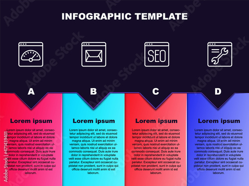 © vector_v, Fototapeta premium Set line Digital speed meter, Website and mail, SEO optimization and Browser setting. Business infographic template. Vector