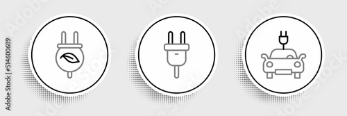 Obraz premium Set line Electric car, saving plug in leaf and icon. Vector