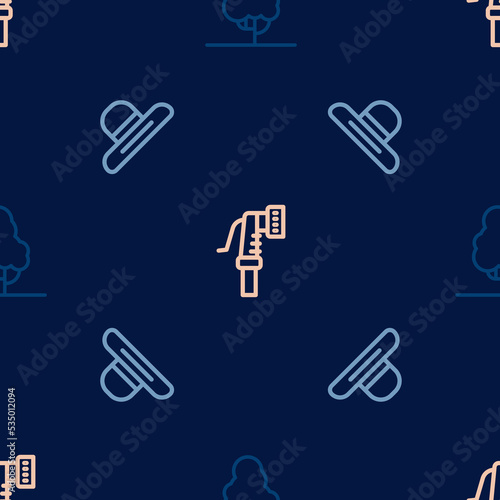 Obraz premium Set line Fruit tree, Farmer worker hat and Garden hose on seamless pattern. Vector