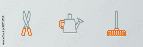 Obraz premium Set line Garden rake, Gardening handmade scissors and Watering can icon. Vector