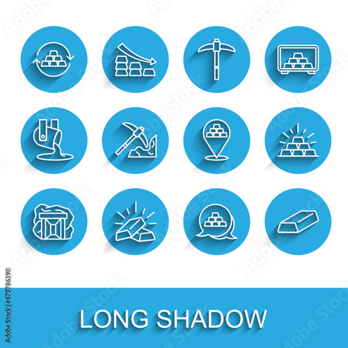 © Vadim, Fototapeta premium Set line Gold mine, bars, exchange money, mining, and icon. Vector