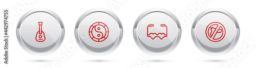 Fototapeta premium Set line Guitar, Yin Yang symbol, Heart shaped love glasses and No war. Silver circle button. Vector