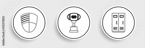 © Oksana, Obraz premium Set line Locker or changing room for football, basketball team or workers, Football club logo template and Award cup and American icon. Vector