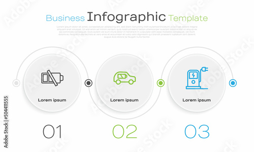 © Oksana, Naklejka premium Set line Low battery, Electric car and charging station. Business infographic template. Vector