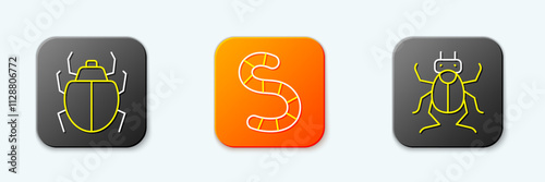 Fototapeta premium Set line Mite, Worm and Beetle bug icon. Vector