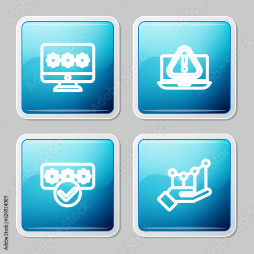 Fototapeta premium Set line Monitor with password, Laptop exclamation mark, Password protection...