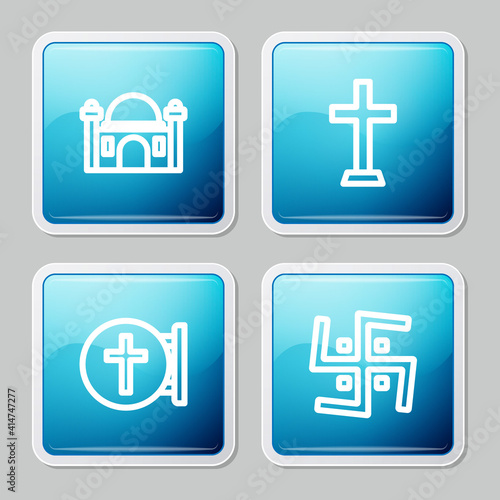 Fototapeta premium Set line Muslim Mosque, Christian cross, and Hindu swastika icon. Vector.