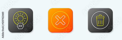 Fototapeta premium Set line No direct sunlight, X Mark, Cross in circle and Trash can icon. Vector