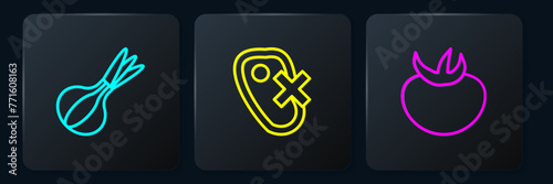 Fototapeta premium Set line Onion, Tomato and No meat. Black square button. Vector
