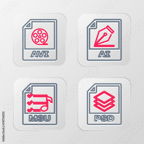 Fototapeta premium Set line PSD file document, M3U, AI and AVI icon. Vector