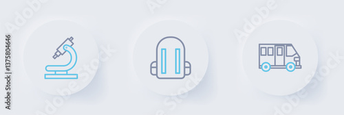 Fototapeta premium Set line School Bus, backpack and Microscope icon. Vector