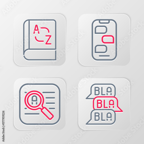 Fototapeta premium Set line Speech bubble chat, Translator, New messages notification and book icon. Vector