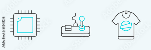 Obraz premium Set line T-shirt, Processor with CPU and Gamepad icon. Vector