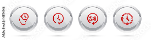 Fototapeta premium Set line Time Management, Clock, 24 hours and . Silver circle button. Vector