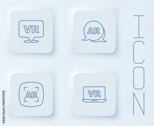 Fototapeta premium Set line Virtual reality, Augmented AR, and . White square button. Vector