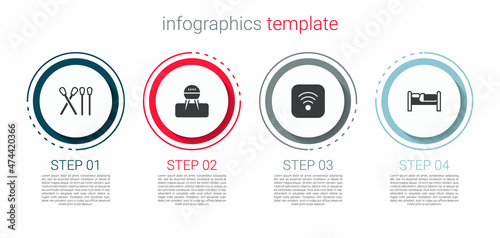 Naklejka premium Set Match stick, Barbecue grill, Wi-Fi wireless internet and Bed. Business infographic template. Vector