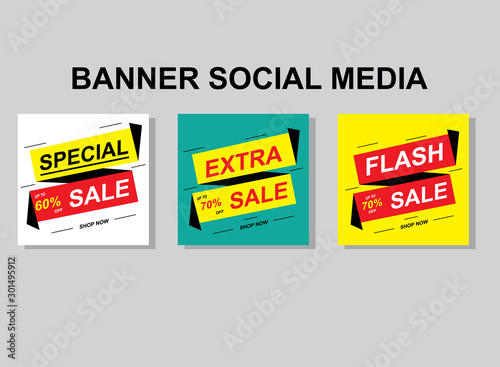Obraz premium Set media banners with discount offer. Shopping background, label for business promotion. Can be used for website and mobile website banners, web design, posters, email and newsletter designs