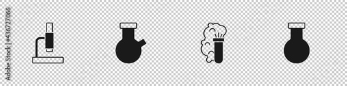 © Kostiantyn, Fototapeta premium Set Microscope, Test tube and flask, Chemical explosion and icon. Vector