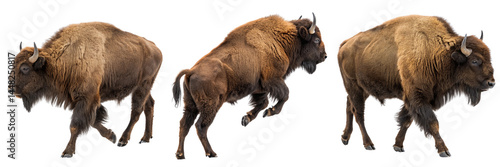 © Sourov, Fototapeta premium Set of a bison standing by run isolated on a transparent background.