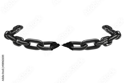 © Naem, Obraz premium Set of a black and white broken chain with one link broken, isolated on a transparent background.