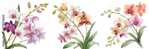 Fototapeta premium Set of A Blooming Cluster of orchids isolated on a transparent background