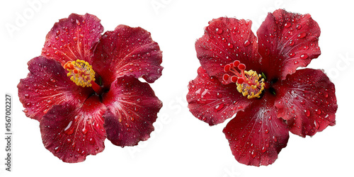 © Antora, Fototapeta premium Set of a bold red hibiscus flower isolated on transparent or white background