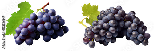 © Imam, Fototapeta premium Set of a bunch of fresh blue grapes, isolated on transparent background.