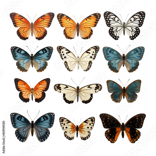 Fototapeta premium Set of a butterfly, isolated on white or transparent background cutout.