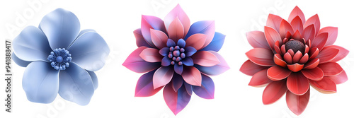 © Partha, Fototapeta premium Set of A 3D icon of a flower isolated on transparent background (2)