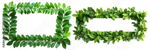 © Naem, Naklejka premium Set of a frame made of green leaves, isolated on a transparent background.