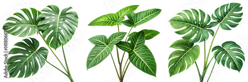 © Sourov, Fototapeta premium Set of a green plant with many leaves isolated on a transparent background
