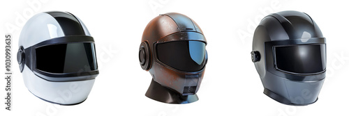 © Partha, Fototapeta premium Set of a high-tech welding helmet isolated on transparent background (2)