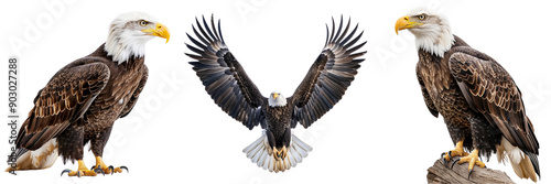 © Promila, Fototapeta premium Set of A majestic bald eagle isolated on transparent background