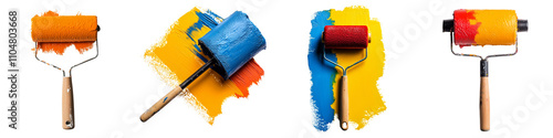 Fototapeta premium set of A paint roller of paint, paint roller, easy way to paint, paint roller, color play with roller, color wizard, color roller, on a transparent backgrounds