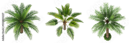© rayzign, Fototapeta premium Set of A palm tree with a bush isolated on transparent background