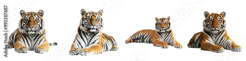 Naklejka premium set of A Tiger, Laying Majestic, Tiger Power, King of the Forest, Tiger Walk, Tiger Roar, Wild Tiger, Beautiful Tiger, Tiger Mystery, on a transparent backgrounds
