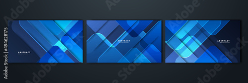 © Salman, Naklejka premium Set of abstract blue black background poster with dynamic. Technology network Vector illustration.